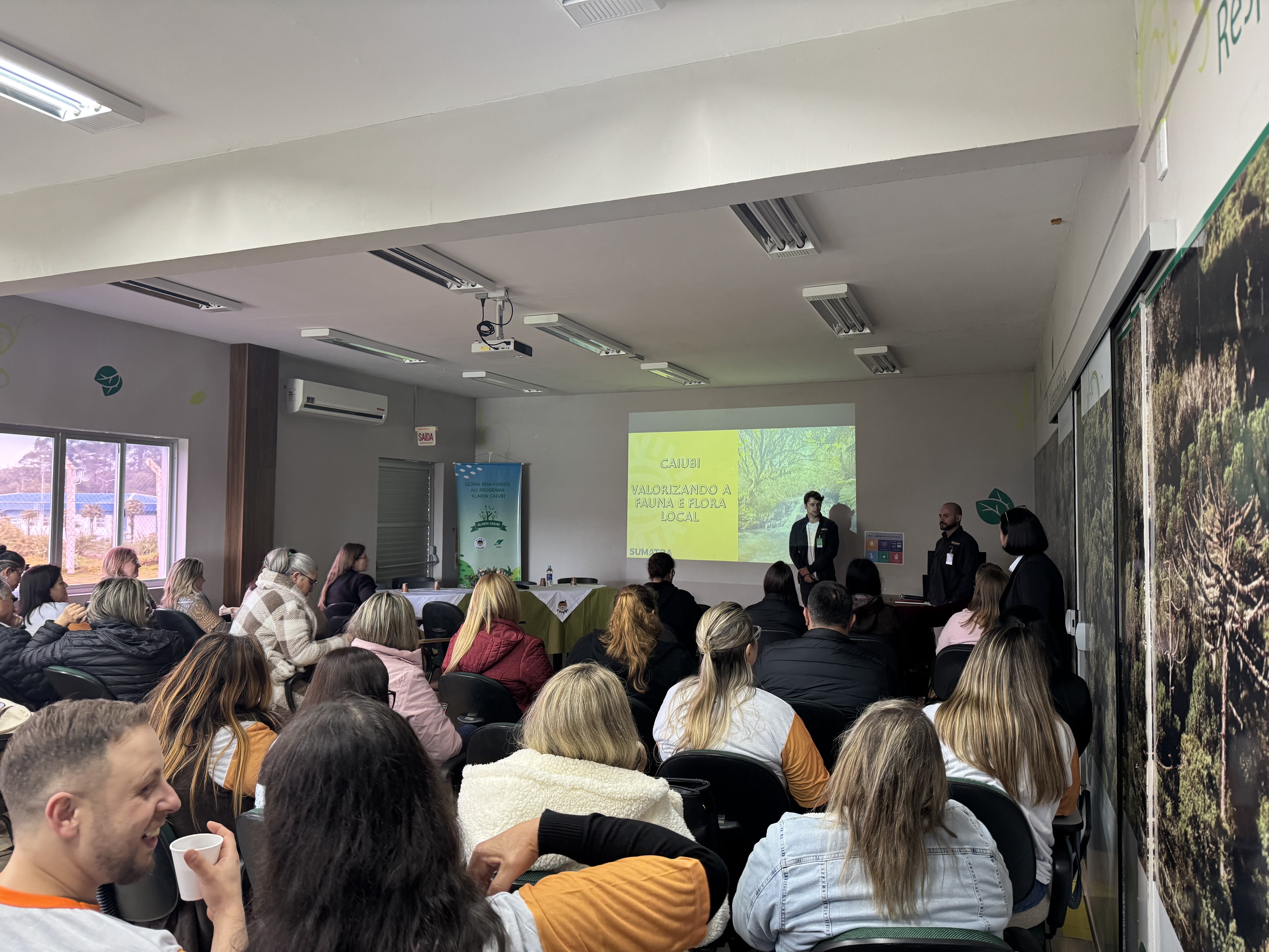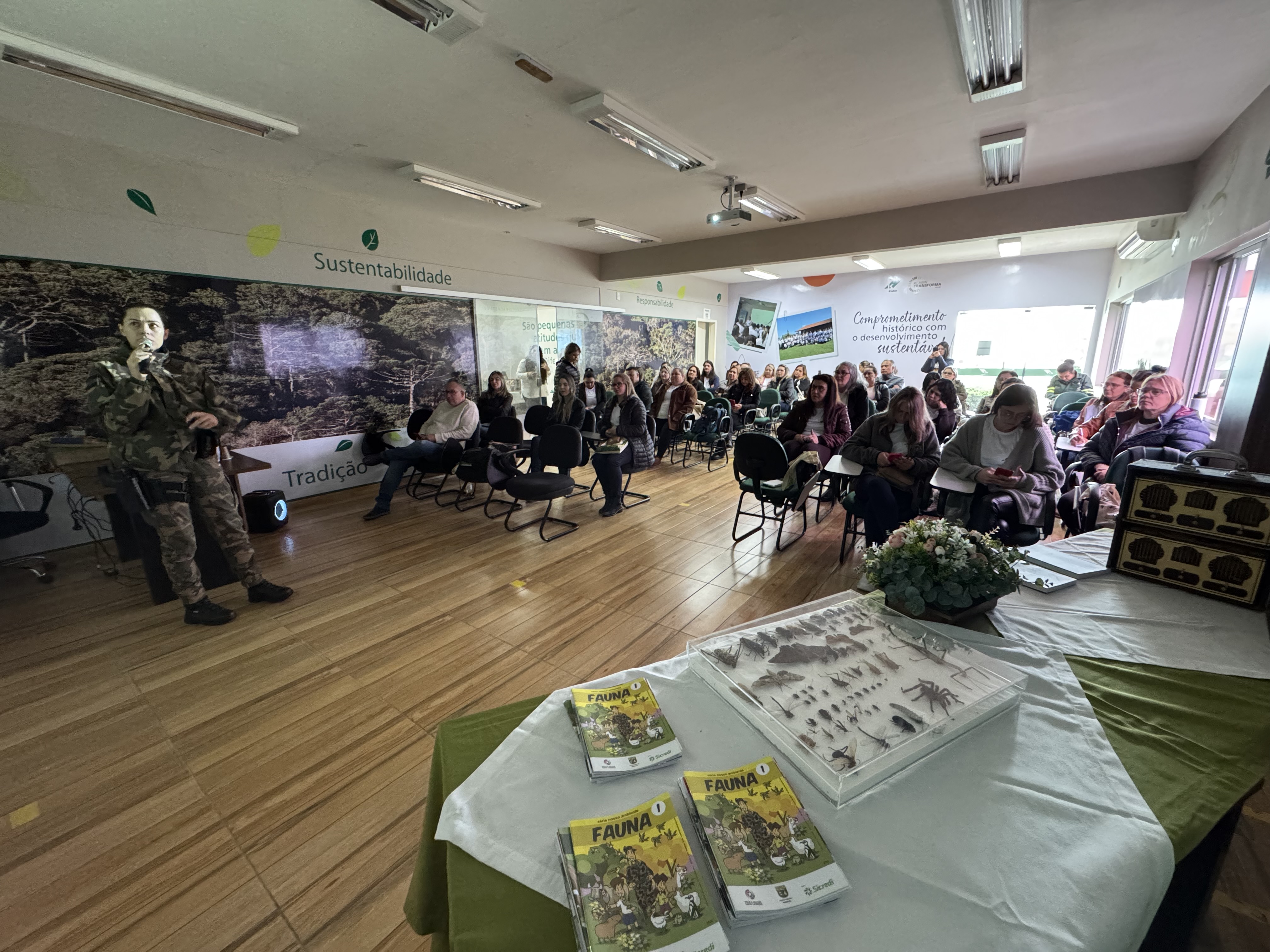 A segunda palestra "Mais do que Animais!" realizada pelos Biólogos, Lucas Fernandes Langer e Dionei Ramos da empresa Sumatra Inteligência Ambiental, abordou temas como o monitoramento da biodiversidade - Fauna e Flora - realizado nas Áreas de Alto Valor de Conservação da Klabin, e as espécies que ocorrem em Santa Catarina, em especial nas áreas da Klabin. No período da tarde foi realizada a dinâmica "Valorização das espécies nativas”, uma brincadeira divertida e interativa, onde os professores participavam de um bingo sobre características da fauna e flora. Um folha foi entregue com figuras interativas de animais e plantas, sendo necessário identificar os nomes das espécies, se era nativo ou exótico e diversas características que se enquadravam melhor com cada espécie. Ao final, os que tiveram mais pontuação, ganharam um brinde. Esta dinâmica pode ser replicada com os alunos, estimulando a interação e reconhecimento dos animais nativos da nossa região.