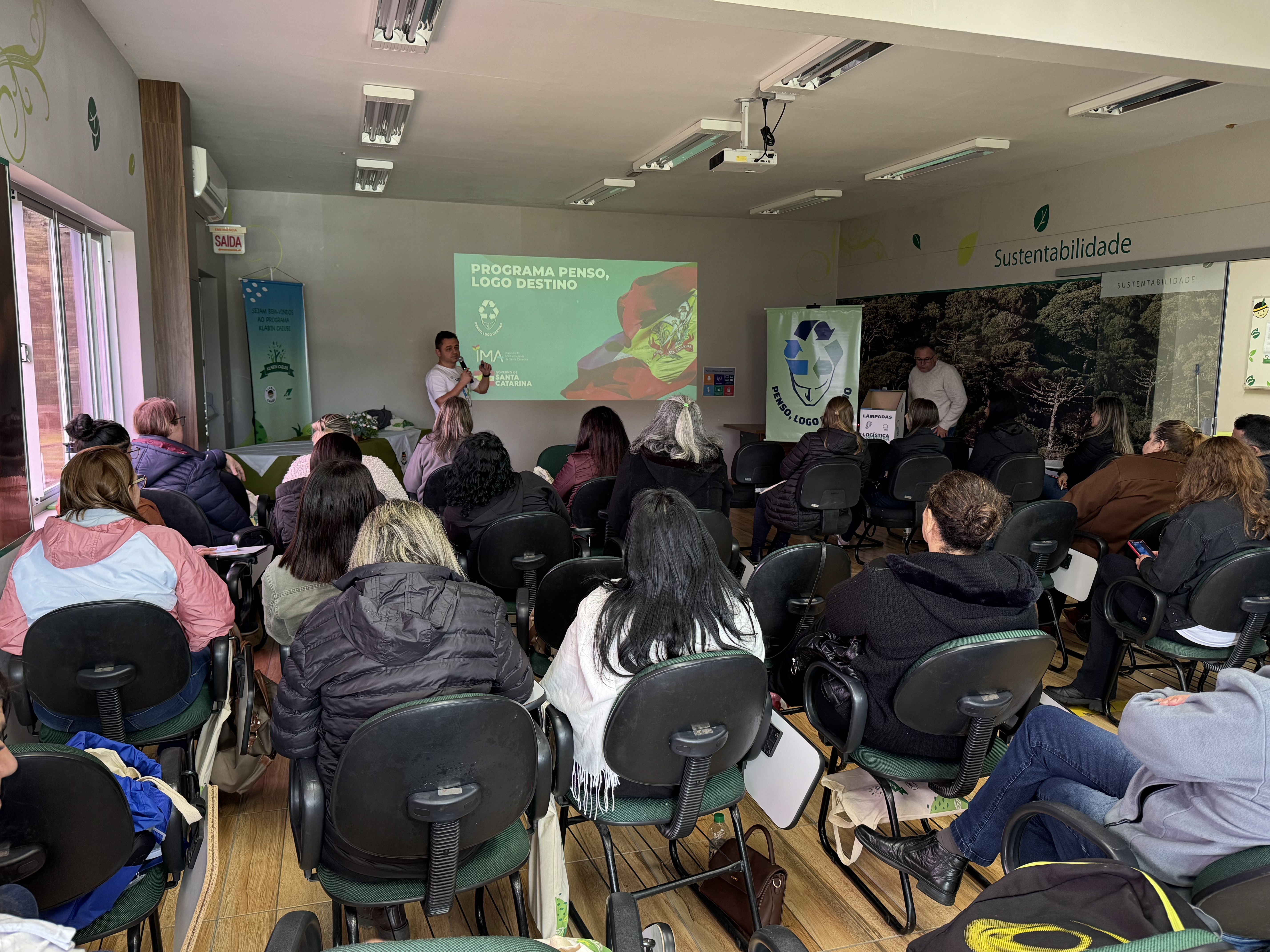 A sétima palestra foi ministrada pelo sr. Gustavo da Silva Ferrari, Eng. Ambiental do Instituto do Meio Ambiente – IMA, da coordenadoria regional de Lages, que apresentou o Programa Penso Logo Destino, programa este, que tem por finalidade a conscientização e o envolvimento de todos os catarinenses para o descarte correto dos resíduos sólidos, tornando Santa Catarina o primeiro estado brasileiro a fazer a articulação da Logística Reversa. Este programa visa a conscientização, a mudança de comportamento e a construção do pertencimento da população para a disposição correta dos resíduos e, consequentemente, para a preservação dos recursos naturais. A intenção é que após o desenvolvimento das três etapas do projeto, Santa Catarina seja o estado brasileiro que mais recicla e reutiliza e que menos produz resíduos.