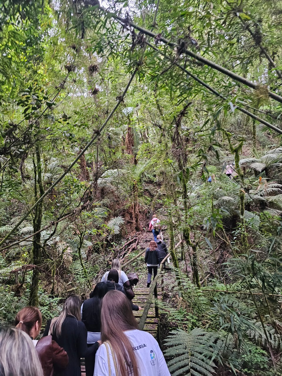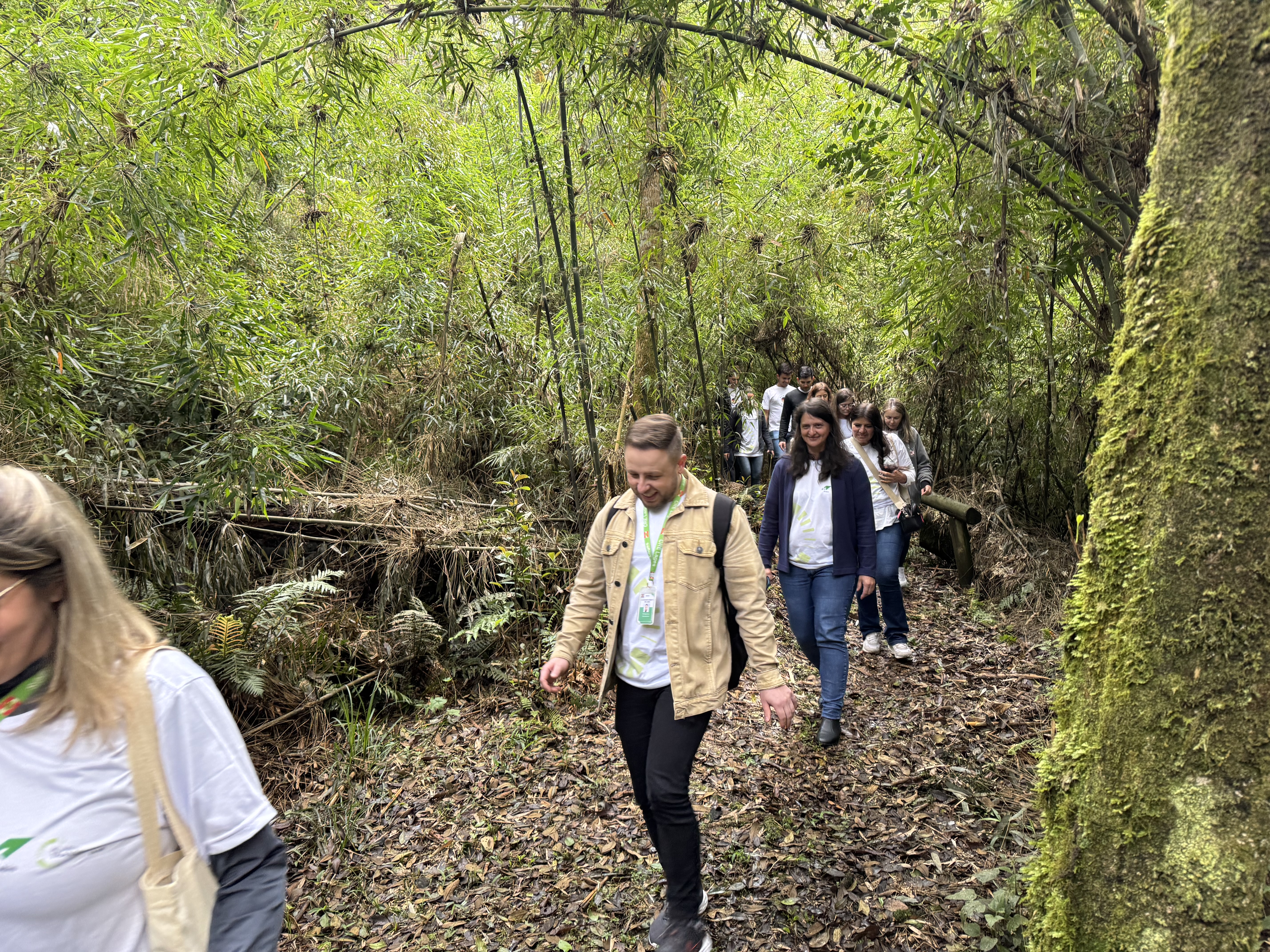 A última atividade foi a Visita Trilha Araucária, onde todos os participantes do evento tiveram um contato direto com a floresta de Araucárias, essa prática contribuiu para demostrar a importância da preservação ambiental e destacar os compromissos da Klabin na conservação dos recursos naturais.